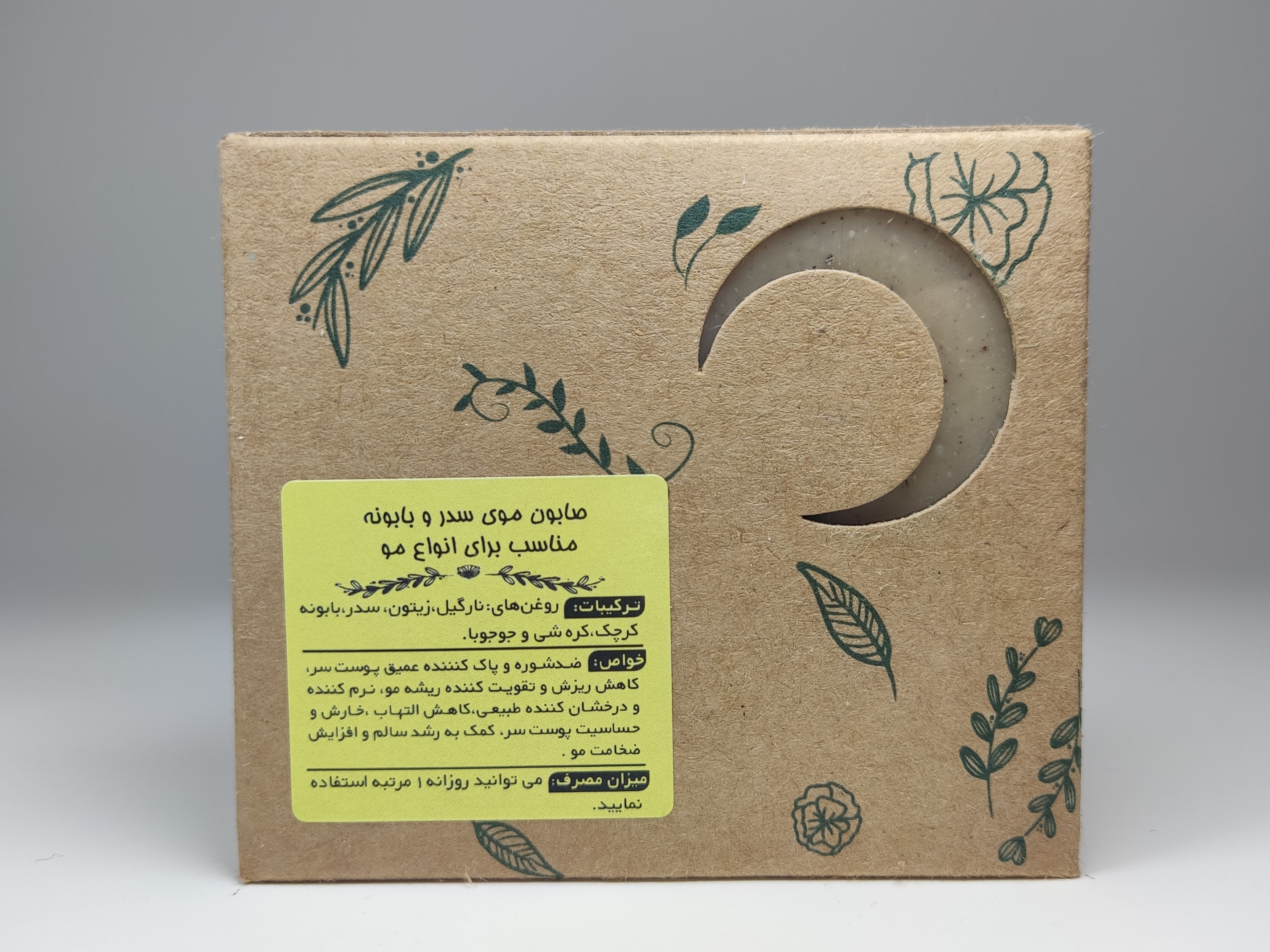 مواد تشکیل دهنده : سدر،بابونه ، روغن جوجوبا، روغن نارگیل ، روغن زیتون ، روغن کرچک ،کره شی باتر ،